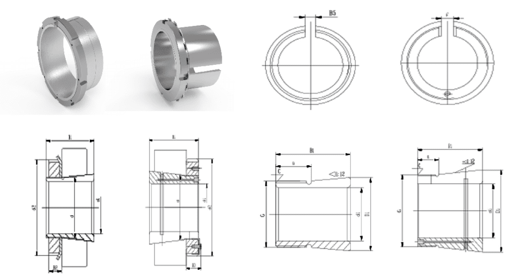 d1 | d2 | B1 | B2≈ | B3max | Adapter Sleeves | Lock nut a | Lock washer a | Locking clip | ||